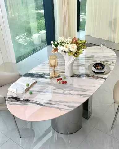 Mesa de mármore rosa para móveis personalizados Superfície de pedra natural de luxo Ideal para jantar, café e mesa de console
