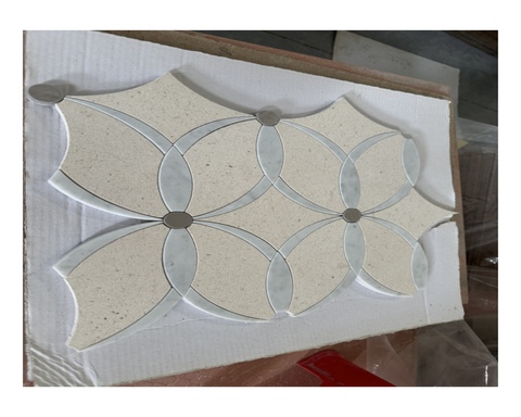 床と背景のためのカスタマイズされた白い大理石のミックスブルーとベージュの大理石の花柄モザイクタイル